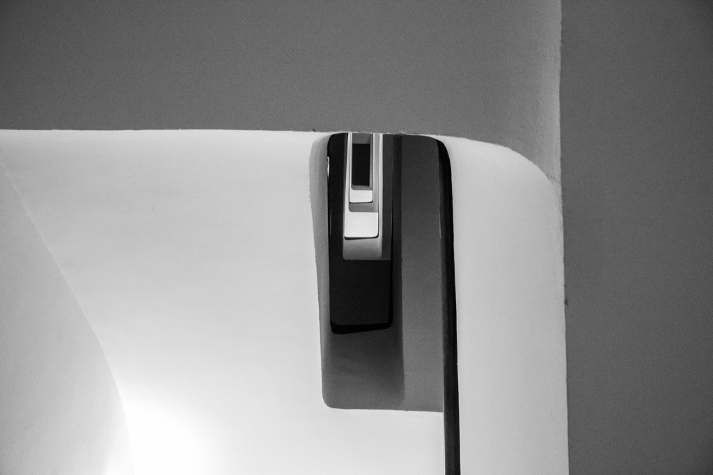 Sen buscar, ás veces, acontece a contemplación. Na escaleira dilúense as coordenadas, as formas, o racional e as referencias espazo-temporais deixándonos unha sensación de vacío, de desequilibrio, transformación e transición que é case unha metáfora da propia vida.